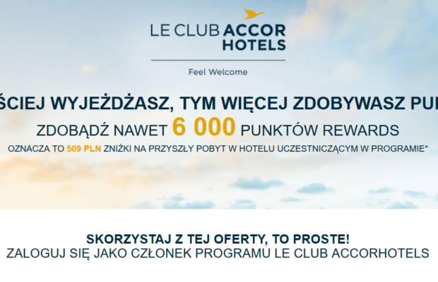 - 6. Oferta umożliwia członkom programu lojalnościowego Le Club AccorHotels i Accor Plus, niezależnie od ich statusu, otrzymanie maksymalnie 6000 punktów Rewards za pobyty w hotelach uczestniczących w programie Le Club AccorHotels na całym świecie. Pobyty w niezależnych hotelach partnerskich programu lojalnościowego nie są pobytami kwalifikowanymi w ramach tej oferty.