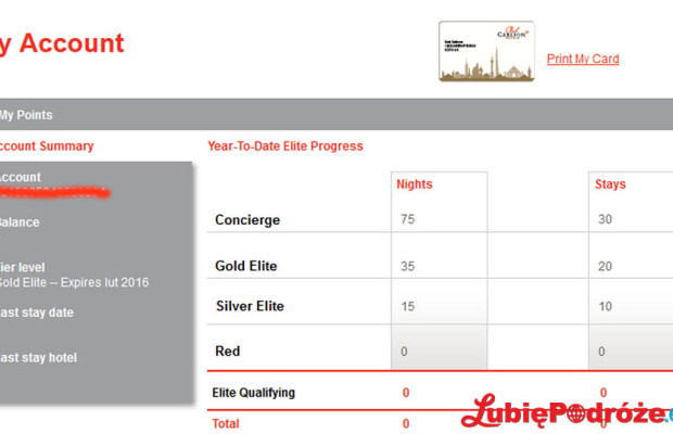 Wczoraj założyłem sobie konto w hotelowym programie partnerskim Club Carlson z podstawowym statusem Red, a już dziś mam status Gold Elite. Jak tego dokonałem? Normalnie taki status otrzymuje się po 35 noclegach lub po 20 pobytach w roku.