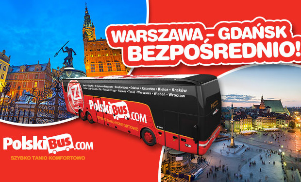 PolskiBus.com z przyjemnością informuje o zmianie, która już od 5 maja zostanie wprowadzona w ramach linii P1. Zgodnie z nowym rozkładem połączenia pomiędzy Warszawą a Gdańskiem będą realizowane bezpośrednio, bez przystanku w Ostródzie. W związku z modernizacją siatki połączeń czas przejazdu skróci się aż o 20 minut i wyniesie zaledwie 4 godziny i 35 minut. Już teraz wejdź na www.polskibus.com i zarezerwuj bilety w niezwykle atrakcyjnych cenach!