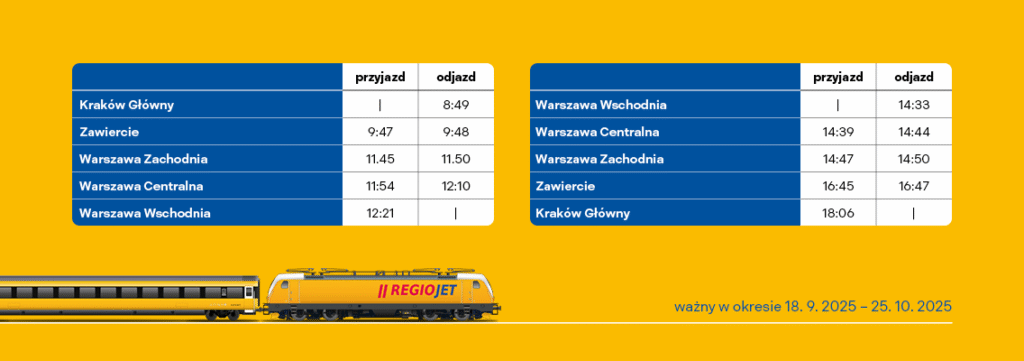 RegioJet w Polsce – nowe kolejowe połączenie Kraków-Warszawa oraz Warszawa-Kraków